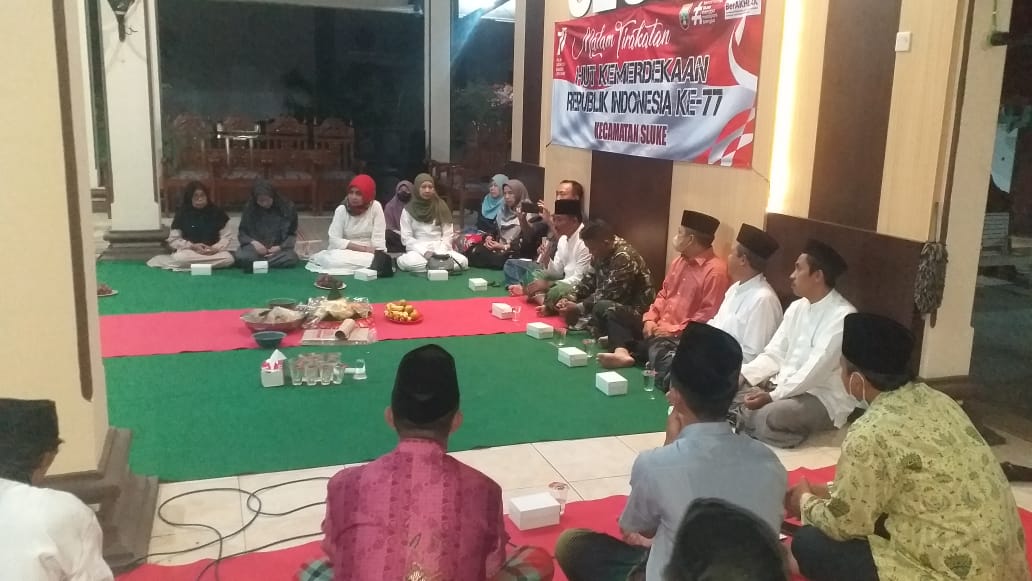 Kegiatan Malam Tirakatan HUT RI yang ke 77 23 Agt 2022 By sysadmin Pemkab Rembang | Rembang | Pemerintahan 1 min read Share this Post [caption id="attachment_1850" align="aligncenter" width="300"] Selasa, 16 Agustus 2022Kegiatan malam tirakatan HUT RI yang ke 77 yang dilaksanakan di pendopo kec. sluke yang berjalan lancar dan aman.#tirakatan#sluke#kecamatansluke[/caption] Kegiatan Zoom menyambut upacara HUT RI yang ke 77 Rapat Koordinasi kades yang dilaksanakan di Pendopo Kec. Sluke