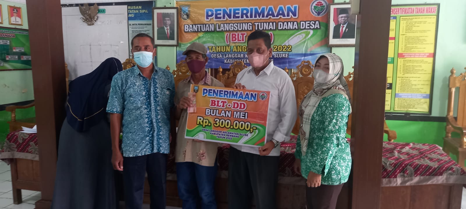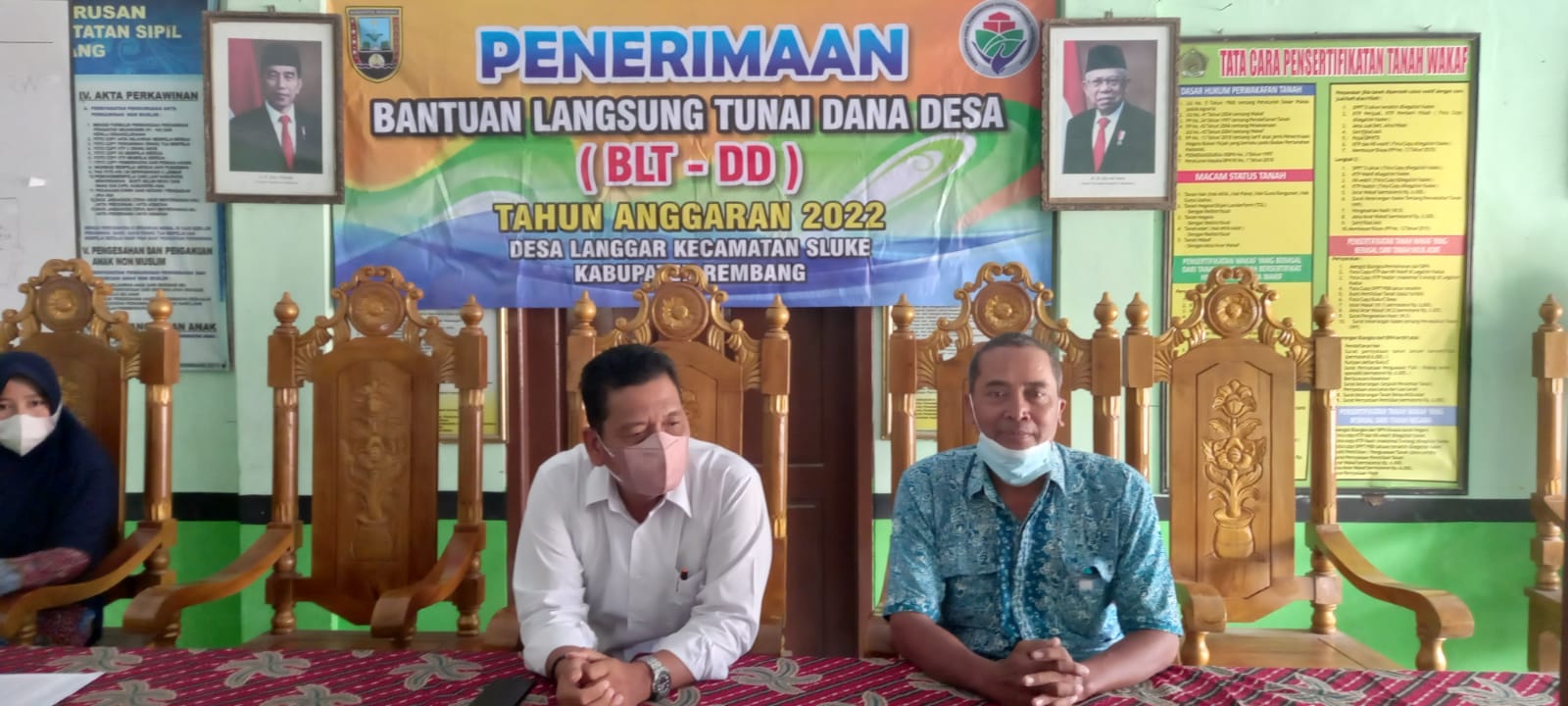 Kegiatan monitoring penyerahan BLT DD Bulan Mei Tahun 2022 Desa Langgar di Balai Desa Langgar, di dampingi oleh pihak Kecamatan Sluke. Kegiatan berjalan tertib dan lancar serta tetap menerapkan protokol kesehatan.
