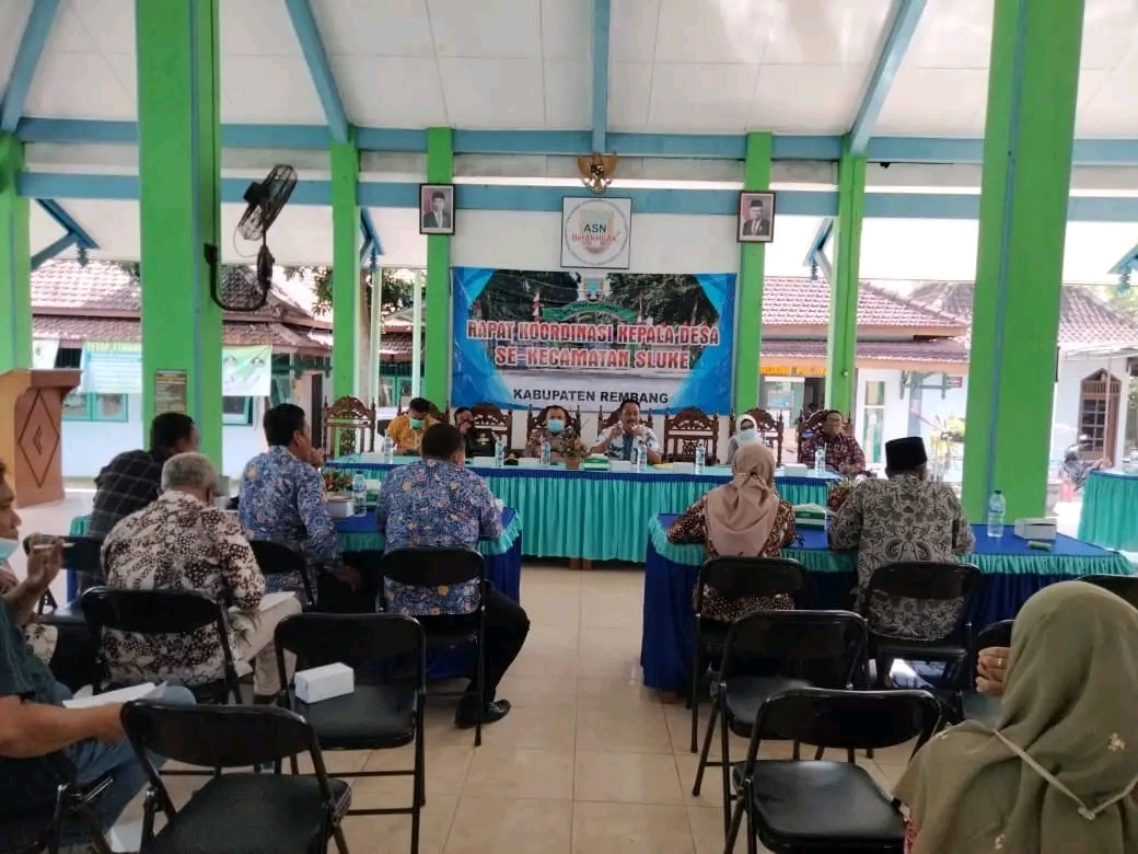 Kegiatan Rapat Koordinasi Kepala Desa Se-Kecamatan Sluke, berjalan lancar serta tetap menjaga protokol kesehatan. kegiatan dilaksanakan di Pendopo Kecamatan Sluke.