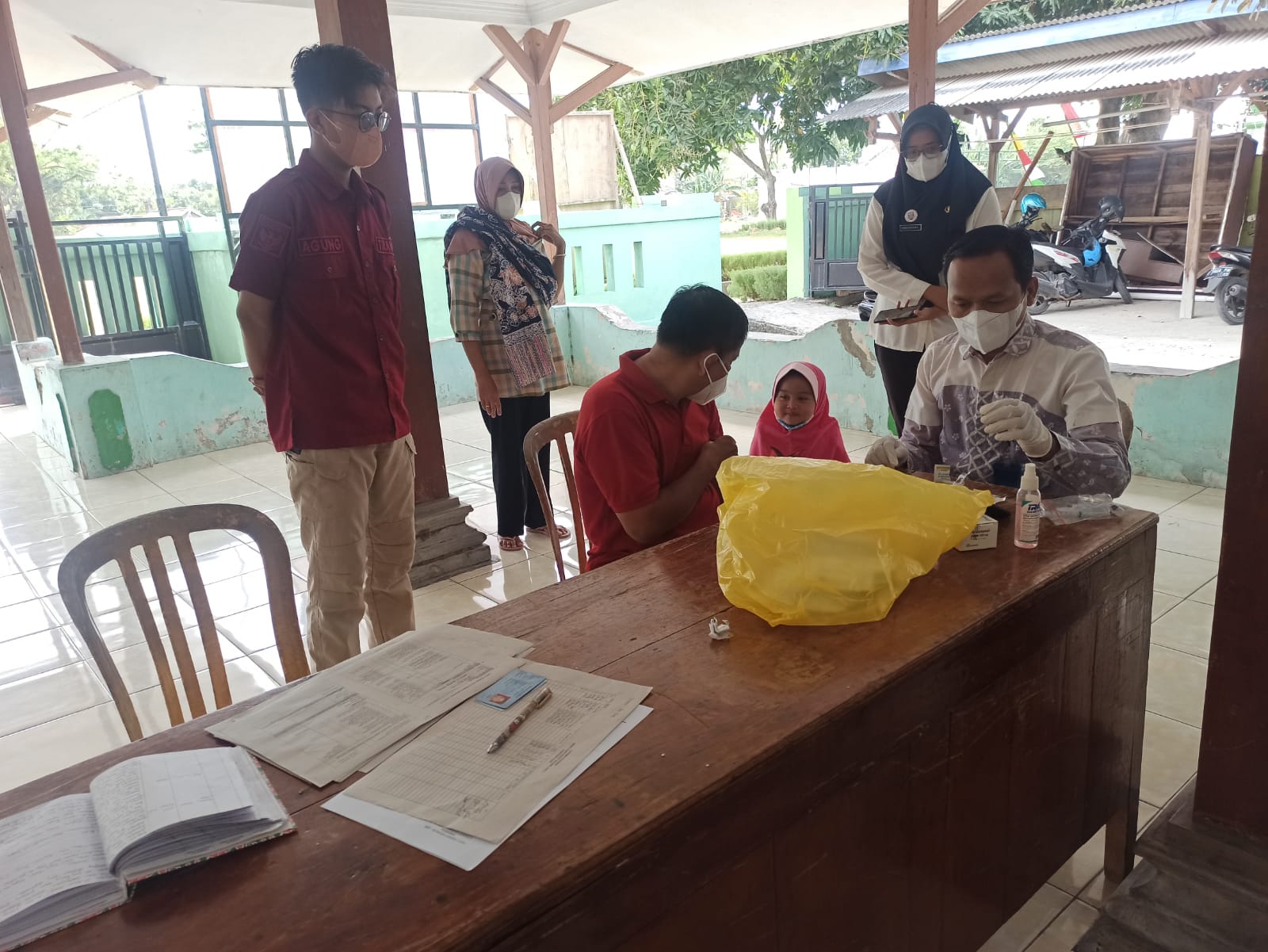 Monitoring vaksinasi oleh Anggota Trantib Kecamatan Sluke di Desa Sluke. Pendampingan vaksin ini dilaksanakan agar proses vaksinasi berjalan aman dan sesuai protokol kesehatan.