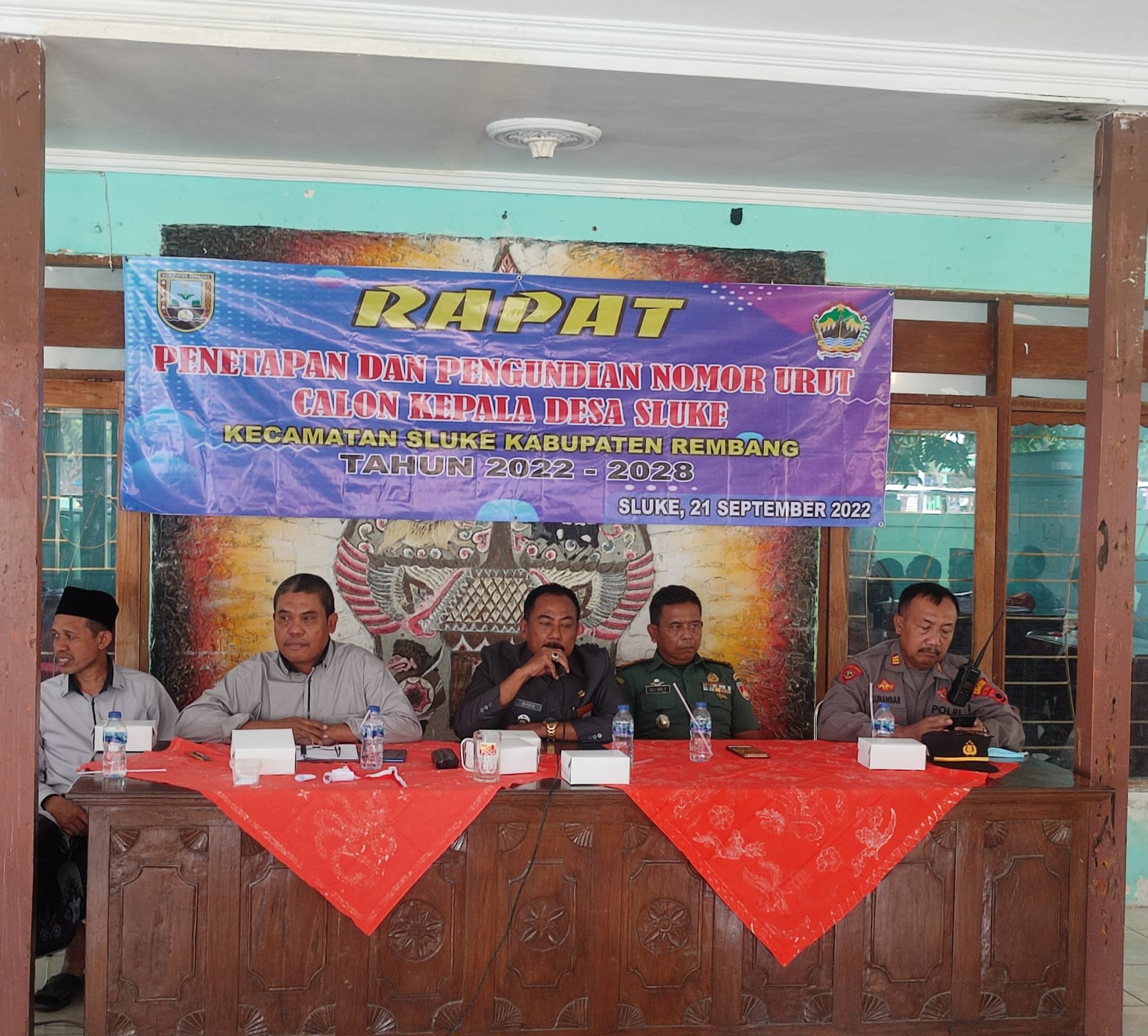 Rapat Penetapan dan Pengundian nomor urut calon kepala desa sluke yang dilaksanakan di balai desa sluke yang berjalan dengan lancar dan tertib.